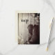 Passen Sie die Rustic Cowboy Boots Country Western Floral Wedding RSVP Response Card mit Ihrem Wunschtermin an. Diese bezaubernden, individuell gestalteten Ranch-Stiefel sind mit einem schwarz-weiß-sepia-Schwarz-Weiß-Foto aus Ledercowboy-Stiefeln mit einem Hintergrund aus verwittertem Scheunenholz und weißen Blume an den Ecken gestaltet.