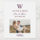 Rustic chic wedding wine bottle favor labels feature a married monogram of the bride and groom names and last name initial, wedding date, and type of wine, paired with a photo of the bride and groom. Ivory background with dark red / purple text.