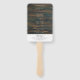 Rustikales Dunkelholz Hochzeitsprogramm Hand Fan. Das Design hat eine dunkle Holzhintergrundstruktur und ein modernes weißes Drehbuch. Personalisieren Sie den gesamten Text auf dem Lüfter. Klicken Sie auf den Link Sammlung unterhalb des Lüfters, um weitere passende Elemente zu finden.