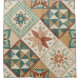 Der Duschvorhang aus dem nahtlosen Diamantenmuster mit seinen faszinierenden geometrischen und blumengeschmückten Motiven zeichnet sich durch den Charme der volkstümlich inspirierten Steppfliesen und dekorativen Fliesen aus. Jedes Diamantensegment zeigt einzigartige Details - von Zickzack Linien und gepunkteten Tessellationen bis hin zu stilisierten Blume mit wirbelnden Blätter. Die aquamarinen, erdigen Brauntöne und die warmen orangefarbenen Farbtöne schaffen eine rustikale, Vintage Ästhetik, die sich sowohl gemütlich als auch raffiniert anfühlt. Es hat symmetrische Anordnung und strukturierte Details.