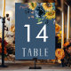 Rustic Dusty Blue Sonnenblumen Hochzeit Tischnummer