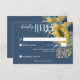 Rustic Dusty Blue Sunflowers Wedding QR Code RSVP Karte
