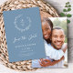Diese elegante Hochzeit bietet Save the Date einen schönen, staubblauen Hintergrund, einen handgezeichnet Wildblume-Kranz, Ihre Initialen und eine elegante Typografie. Auf der Rückseite ist Ihr Foto im vertikalen Format. Das Foto auf der Rückseite ist bei Bedarf abnehmbar. Es ist ein perfektes Design für eine rustikale, aber elegante Hochzeit! Sehen Sie sich die Kollektion für weitere Artikel an!