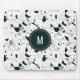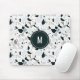 Rustic earthy terrazzo stone pattern, monogram mouse pad. Natural sand, dusty blue and deep hunter color palette with round coordinating dark centered monogram