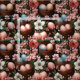 Celebrate the season with this stunning seamless watercolor pattern featuring speckled Easter eggs nestled in rustic wicker baskets. Surrounded by lush pink peonies, white blooms, and deep green foliage against a moody dark background, this design offers a sophisticated take on traditional holiday decor. The rich textures and warm tones make it an exceptional choice for high-end quilting, festive table linens, and seasonal home accents.