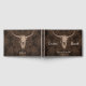 This rustic elegant wedding brown western wedding Guest Book features a vintage style design background. Old wild west rodeo cowboy inspired antique cool, trendy bull skull. Image copyright Marg Seregelyi Photography.