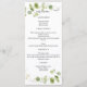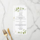 Beautiful eucalyptus greenery wedding menu card. Its elegant design features soft watercolor leaves and subtle gold faux accents that bring a touch of botanical sophistication to your wedding reception. This custom menu's clean, versatile aesthetic is perfect for rustic, boho, or elegant wedding themes. Personalize the text to match your special day's cuisine and styling.