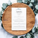 Presenting our elegantly understated Wedding Menu, a perfect blend of simplicity and sophistication for your special day. Gracefully adorned at the top with a minimal watercolor eucalyptus branch, symbolizing tranquility and renewal, it sets a serene tone for the meal to come. The heading 'Menu' is artfully inscribed in a chic modern script, inviting your guests to a culinary journey. Personalize this exquisite piece with your names, adding a touch of intimacy. Below, the menu text unfolds, guiding your guests through the delightful flavors and dishes that await, making every course an anticipation and a memory.