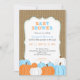 Rustikale Herby Baby Dusche mit einem Imitat Kürbisrahmen und einem Haufen Kürbis in Blau, Orange und Weiß. Andere Farben und eine Baby Sprinkle Version sind ebenfalls verfügbar.