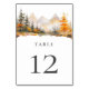 Rustic fall mountain pine forest wedding table number.