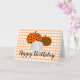Ein zauberhaftes Trio von Kürbissen voller rustikaler Muster über einem orangefarbenen Gingham-karierte und die Worte Happy Birthday darunter. Das Innere lautet: "Wir wünschen Ihnen ein reichhaltiges Jahr voraus".