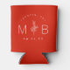 Full-color custom printed can coolers make a fun and functional wedding favor your guests will love! Personalize the template with the bride and groom's names or monogram initials. Add your wedding date, the city, state or venue name or any other custom text. This modern rustic logo-style design has a simple floral stem and mixed typography in cherry red and white colors. Use the design tools to choose any background color, edit the fonts or upload your own photos to create a completely custom wedding favor to match your wedding colors and style!