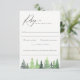 Rustikale Aquarellwald Bäume, Hochzeit RSVP Karten mit Food Allergie Note. Die Rückseite der Karte weist eine solide dunkelwaldgrüne Farbe auf.
