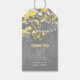 Gelbe und graue rustikale Waldzweige und Streichellichter Hochzeit danke Tags