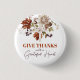 Celebrate the season with this rustic watercolor fall floral button, featuring the uplifting quote: 'Give thanks with a grateful heart.' Perfect as a thoughtful gift for yourself or a meaningful keepsake for small group gatherings, fall brunches, or large women’s conferences.