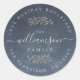 Rustikal schicke, schlichte Weihnachtsfeiertage Rücksendeadresse klassischer Rundaufkleber oder Umschlag Aufkleber mit Beeren-Früchten in schicken, subtilen Glitzer Gold auf einem dunkelblauen Aquarell. Fügen Sie einfach Ihren Namen und Ihre Adresse hinzu. Exklusiv für Sie entworfen von Happy Dolphin Studio.