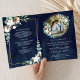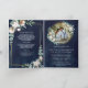 Rustic Gold Cotton Eucalyptus QR Code Navy Wedding Einladung