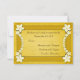 Rustikale goldene Blüte © Sunny Mars Designs. Individuell anpassbare formelle, Vintage, rostige, elegante Hochzeitskarten mit gelben Bandbreiten, moderne, hübsche, weiße Blume auf altem Pergamentpapier Hintergrund.