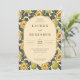 This wedding invitation features a charming design with an oval frame surrounded by a playful border of illustrated avocados and leaves in varying shades of green. The color palette is earthy, combining beige backgrounds with dark green accents, creating a warm and inviting atmosphere. The typography uses elegant serif fonts to present the details clearly, emphasizing the names "Lauren" and "Benjamin" in bold for prominence. The overall style blends rustic charm with modern elegance, perfect for couples looking to add a touch of nature-inspired whimsy to their special day.