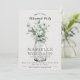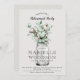 Rustikaler Garten eucalyptus botanische grüne Blattwerk Pensionierung Party Einladung. Eukalyptus und Baumwollüberlagerungen auf einem cremefarbenen Imitat Leinen Textur Hintergrund. Eleganter offener Gesichtstyp kontrastiert mit einer Schriftzeichen im Blumenstil.