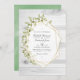Trendy Salbei grün und weiß Aquarell verlasse rustikale Landhaushochzeit Einladung mit goldenem geometrischem Rahmen. Ideal für jede Art von Thema oder Gartenhochzeit. Der QR-Code auf der Rückseite führt zu Ihrer Hochzeitsstelle, wo die Menschen mehr und uAwg lernen können.
