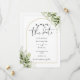 Dieses elegante botanische Grün verlasse Goldbogen Save the Date Einladung kann mit Ihren Informationen in chic Typografie mit Ihrem Hochzeitswebsite QR-Code und Details auf der Rückseite personalisiert werden. Entwickelt von Thisisnotme©
