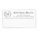 Rücksendeadresse Versandetiketten mit Ihrem Monogramm in einem rustikalen grünen Aquarellkranz und Ihrem Firmennamen in einem dicken handgeschriebenen Schriftart und zwei Textzeilen für Ihre Rücksendeadresse, auf weißem Hintergrund. Eine dünne Linie teilt den Bereich unten, wo Sie die Adresse Ihres Kunden handschreiben können. Diese botanisch grünen Versandetiketten sind eine gute Möglichkeit, um Ihren Packages eine berufliche Touch hinzuzufügen.