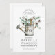 Rustikale elegante Überraschung 70. Geburtstagsfeier Einladung mit botanischem grünen Eukalyptus und Baumwolle in einer Aquarellwassergießdose, begleitet von einer klassischen Gravur offenen Gesicht Typografie auf weißem Hintergrund. Rustikale Geburtstagsfeier.