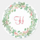 Rustic Greenery Wreath Red Monogram Christmas Runder Aufkleber
