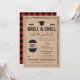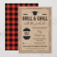 Invite your guests to celebrate your graduating son or daughter's academic accomplishments with this Grill & Chill with the graduate invitation in a rustic design, the back featuring a printed red buffalo check pattern.