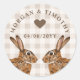 Rustic Hare Bunnies With Names And Date Wedding Runder Aufkleber