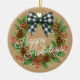 Rustic Holly Wreath White Black Checkered Bow Keramik Ornament
