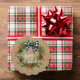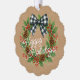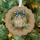 Rustic Holly Wreath White Black Checkered Bow Ornament Karte