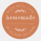 Rustic, modern and simple homemade baked goods or jam canning sticker with the text homemade, made with love and your name in white stylish typography on a burnt orange background. Simply add your name to the label. Write the product names on the stickers when your products are ready. Exclusively designed for you by Happy Dolphin Studio. If you need any help or matching products, please contact us at happydolphinstudio@outlook.com.
