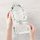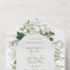 AUCH MIT EINEM QR CODE IM UAWG BEREICH ERHÄLTLICH. Dieses Design ist mit einem weichen Rahmen aus Efeu, Farnen und anderen Grünpflanzen um ein cremefarbenes Oval herum gestaltet. Personalisierte All-In-One-Einladungen sind eine einzigartige Kombination aus einer schön gedruckten, maßgeschneiderten Einladung und einer leicht zu abreißenden perforierten UAWG-Postkarte. Und sie sind so einfach zu bedienen! Man falte einfach, dann Siegel die Rückklappe mit den drei beiliegenden Klarkleben, und Post. Und wenn Ihre Gäste Ihre persönliche Einladung erhalten, reißen sie einfach die perforierte RSVP Karte ab und lassen sie in der Mail an Sie zurück!