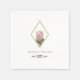 Dieses Design zeichnet sich durch eine rosa rustikale King Protea Blume aus. Die King Protea Blume mit ihren grünen Blätter ist elegant gerahmt mit einem goldenen Rahmen in der Farbe Diamant. Die königliche Protea Blume und ihre Grünanlage schaffen ein rustikales, blumengeschmücktes Landschaftsbild. Rustikales Hochzeitservieren mit eleganten, modernen Elementen. Auch die passenden Hochzeitseinladungen und andere Schreibwaren sind verfügbar.