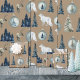 Ein Kraft Weihnachtsfeiertag Set-Trio mit wasserfarbenlackierten Fichtenbäumen mit Fichtenblau-Ornamenten, arktischem Weißen Fuchs und einem Rentier in einem Wiederholmuster.