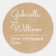 Ein klassisches Design, das das Set der fröhlichen Paarnamen in einem eleganten, weißen Drehbuch über dem besonderen Datum auf einem rustikalen Krafthintergrund präsentiert. Entwickelt von Thisisnotme©