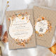 Personalize this unique rustic kraft Autumn leaves and Fall floral frame orange and brown all-in-one wedding invitation featuring soft watercolor terracotta and sage green floral and leaf wreath crest shape frame with simple script over an elegant striped rustic kraft background on the front, and circle floral frame on the back with QR code and wedding website for your guests to RSVP digitally. Easily add your wording and upload your QR code to make it uniquely yours! Order prints + envelopes, and/or the instant digital file download - perfect for evites, or to print at home or send to the print shop of your choice. Custom design requests, product additions to the collection, and template questions are always welcome - click the "message" button, or email direct: contact@figandlilyco.com. Design is lovingly created by Fig and Lily Studios ♥ Sending blessings and thanks for being here with us!