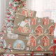 Ein Kraft-Urlaubspapier mit Aquarellmalereien, Weihnachten- und Lebkuchenhäusern, Schneemobben, Schneemännern und Bonbons.