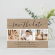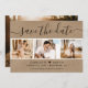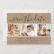 Elegante rustikale Hochzeitskarte mit Foto Save the Date mit einem modernen Skript-Schriftart und einer Foto-Collage auf einem Kraftpapier-Look Hintergrund. Sie können diese Karte ganz einfach mit Ihren Bildern und Hochzeitsdetails personalisieren, ggf. auch mit einer Hochzeitswebsite.