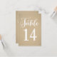 Zwei Hochzeitskarten zeigen "Table" in einem hübschen weißen Schriftsatz mit einer personalisierten Zahl, und ein Hintergrund mit einem rustikalen, kraftbraunen Tischnummer mit texturiertem Erscheinungsbild. Personalisieren Sie die gewünschte Nummer und fügen Sie sie Ihrem Warenkorb hinzu.