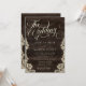 Rustic Lace and Wood Script Calligraphy Wedding Invitation. Announce your upcoming nuptials with this striking wedding invitation, showcasing a rich dark wood background that exudes natural rustic elegance. Intricate, vintage-inspired lace trim adorns the sides, framing the beautifully styled ornate script typography that announces the union of two souls. This design is ideal for a wedding with a rustic, country, or bohemian theme, offering a sophisticated yet approachable aesthetic. The warm tones of the wood and the delicate lace create an elegant and romantic feel for your guests. Get the perfect blend of rustic charm and vintage elegance with this captivating wedding card.