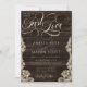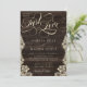 Rustic Lace Dark Wood Just Love Script Wedding Einladung