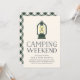 Abenteuer in den Wald für ein Bachelorette-Wochenende, Bachelor-Party, Wiedersehen oder Geburtstagsparty? Die rustikalen coolen Einladungen mit einer Camping-Laterne-Illustration in Jägergrün mit "Camping-Wochenende" in rauchblauen Schriften und Ihren Veranstaltungsdetails darunter laden Sie ein. Passen Sie Ihren Veranstaltungstyp und Ihre Details an, damit diese Einladung für jeden Ausflug funktioniert!