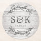 Rustic Laurel Leaf Monogram Wedding Runder Pappuntersetzer
