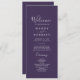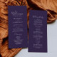 Dieses rustikale Lavendel-Koordinatenkollektor-Hochzeitsprogramm ist perfekt für eine Hochzeit. Das elegante und dennoch rustikale Design besticht durch ein stimmungsvolles, dunkles lila Ambiente mit einem modernen böhmischen Garten. Koordiniert mit der Rustic Lavender Collection von Fresh & Yummy Paperie. Geben Sie die Namen des Paares, das Datum und den Ort der Hochzeit, Dankeschön-Nachricht, Dienstorden, Hochzeitsfeier und ein optionales "in Loving Memory"-Denkmal ein.