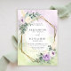 Mit diesem Rustic Lavender Lila Boho Chic Geometric Wedding Invitation, mit zwei eleganten überlappenden Hexagon-Rahmen mit einem atemberaubenden Goldfolienüberlagerungsrahmen (digitaler Effekt), kündigen Sie Ihre Hochzeit stilvoll an. Dieses Design mit üppigen Eukalyptusbäumen, sanfter Hochzeitsgrün und zartem Pampasgras verbindet moderne geometrische Eleganz mit einem traumhaften Aquarellhintergrund. Ideal für eine böhmische, rustikale oder naturlich inspirierte Hochzeit, strahlt diese Einladung Raffinesse, Romantik und mühelosen Charme aus. Es ist vollständig anpassbar und ideal für Paare, die botanische Details, Goldakzente und eine Touch zeitgenössischen boho Flair Liebe haben.