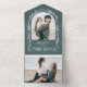 This unique design features a trendy arch-shaped photo template with a white line drawn winter botanical border on a sage green background. The panels feature complementary floral graphics, text fields and a bonus tearaway photo template.