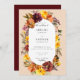 Elemente: Lebhafte Abblendfloralen vor einem blassfarbenen Hintergrund. Klassische Serif-Schriftart. Farben: Marsala, Orange, Brand sienna, Pflaume, Grün, Pfirsich. Themen: rustikal, Herbst, Herbst, boho, bohemian, Land, Vintag. Sammlung: Rustikale Marsala Burnt Orange Fall Wreath Wedding Collection. Art des Produkts: Einladungen zu Hochzeiten